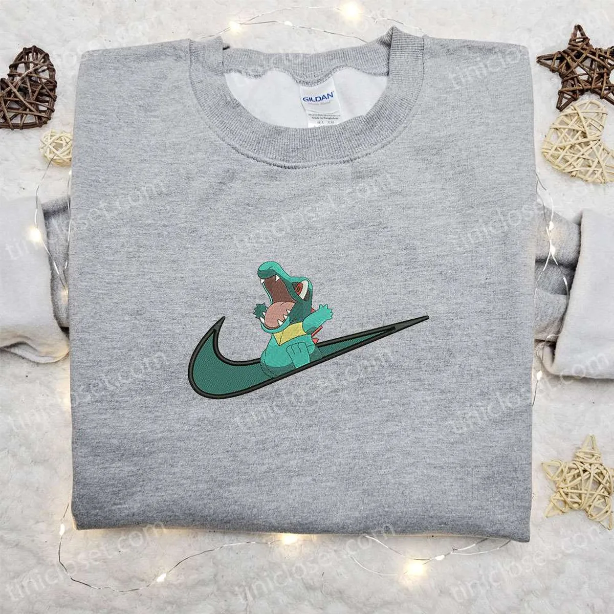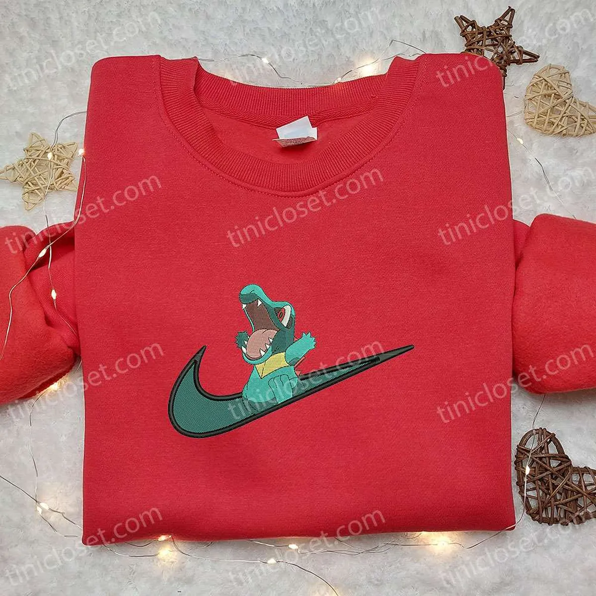 Totodile x Swoosh Anime Embroidered Hoodie, Cool Anime Clothing, Best Gift Ideas for Family