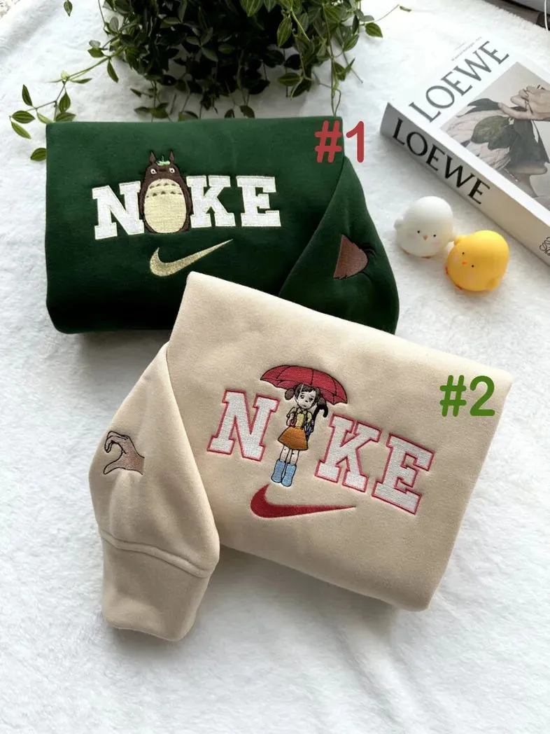 Totoro and Mei Embroidered Sweatshirt, Studio Ghibli Character Embroidered Hoodies, Anime Couple Matching Embroidered Crewneck, Anime Fan Gift