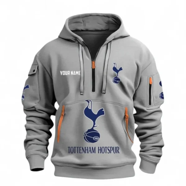 Tottenham Hotspur Fans Gift Hoodie Half Zipper, All Over Print Hoodie Half Zipper For Sport Fan, Custom Name EPL116073125025-Grey