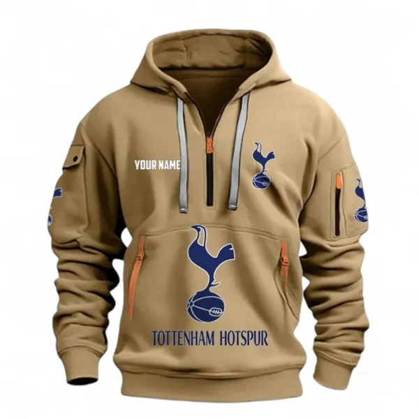 Tottenham Hotspur Fans Gift Hoodie Half Zipper, All Over Print Hoodie Half Zipper For Sport Fan, Custom Name EPL116073125025-Khaki