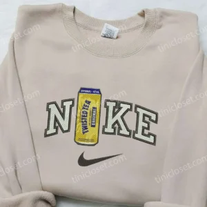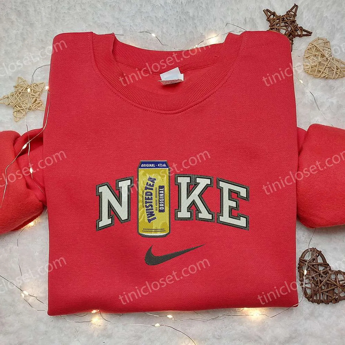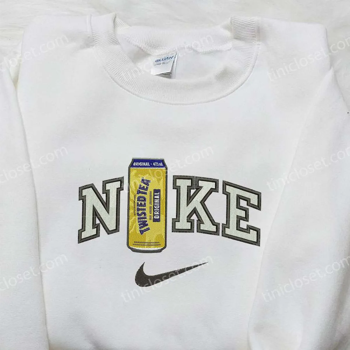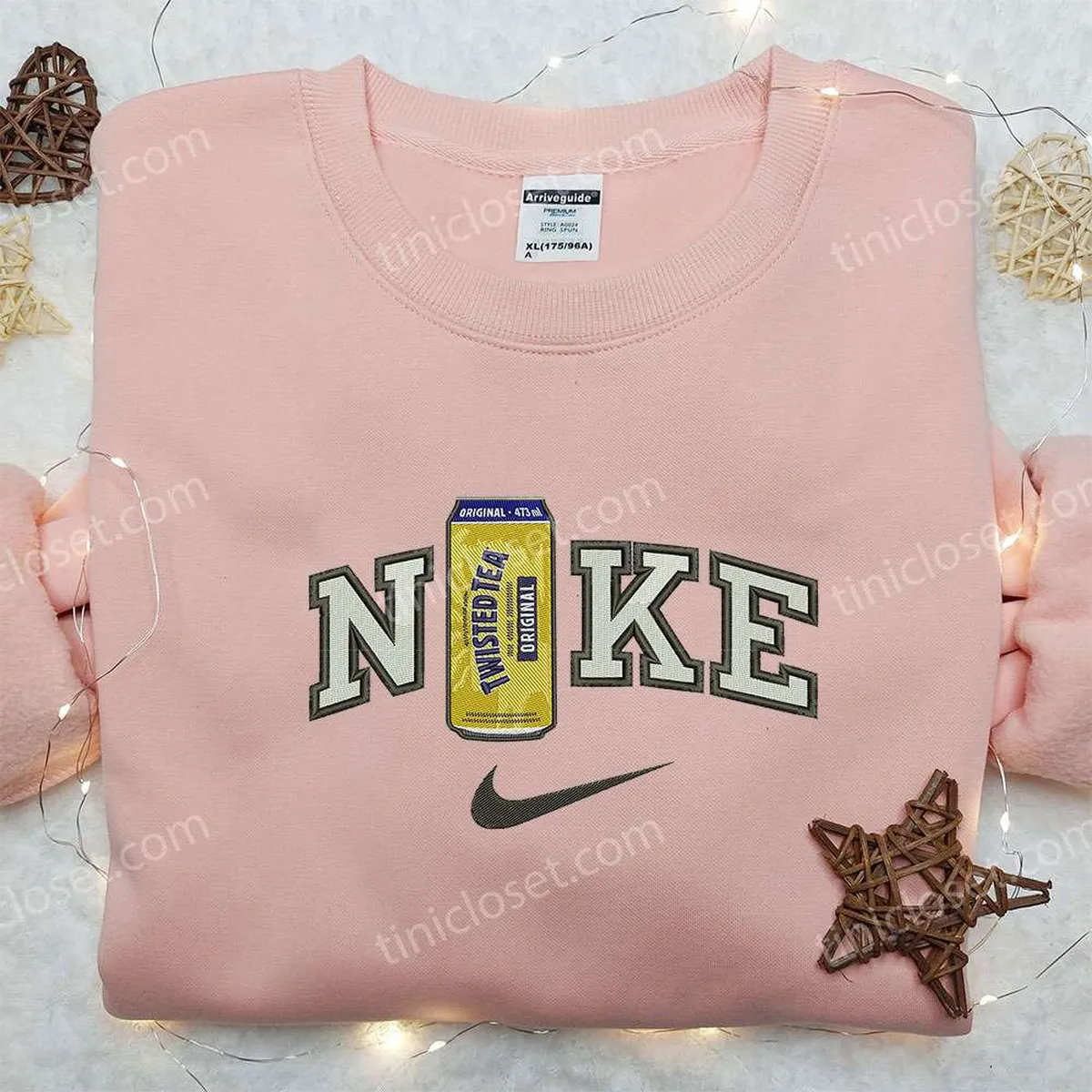 Twisted Tea Bottle x Nike Embroidered Hoodie, Favorite Food Embroidered Shirt, Nike Inspired Embroidered Shirt