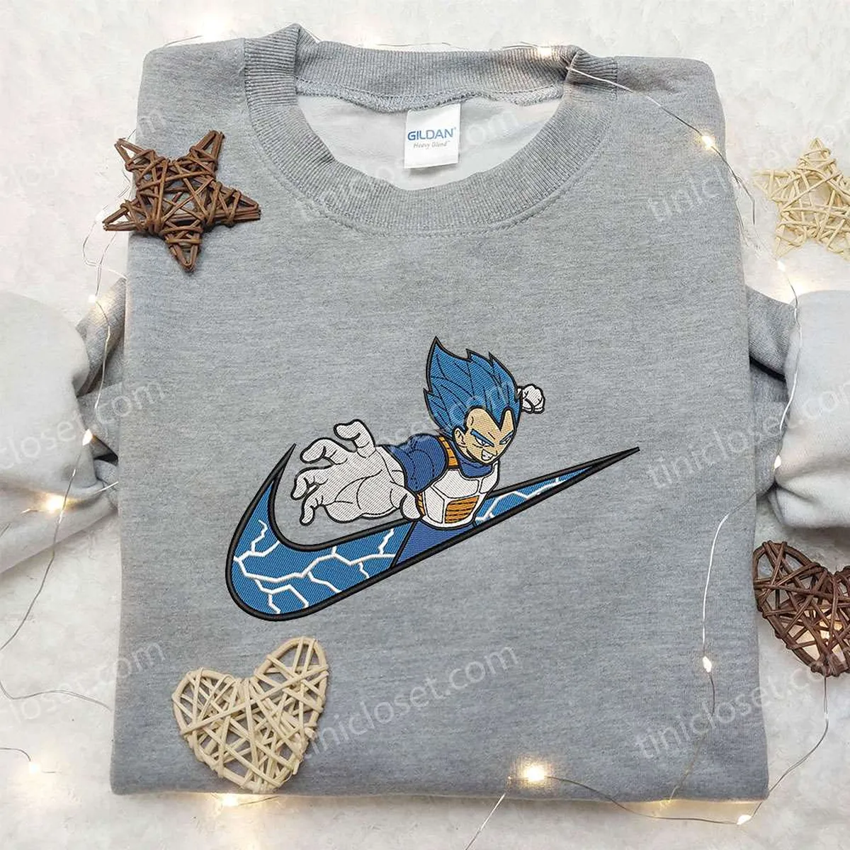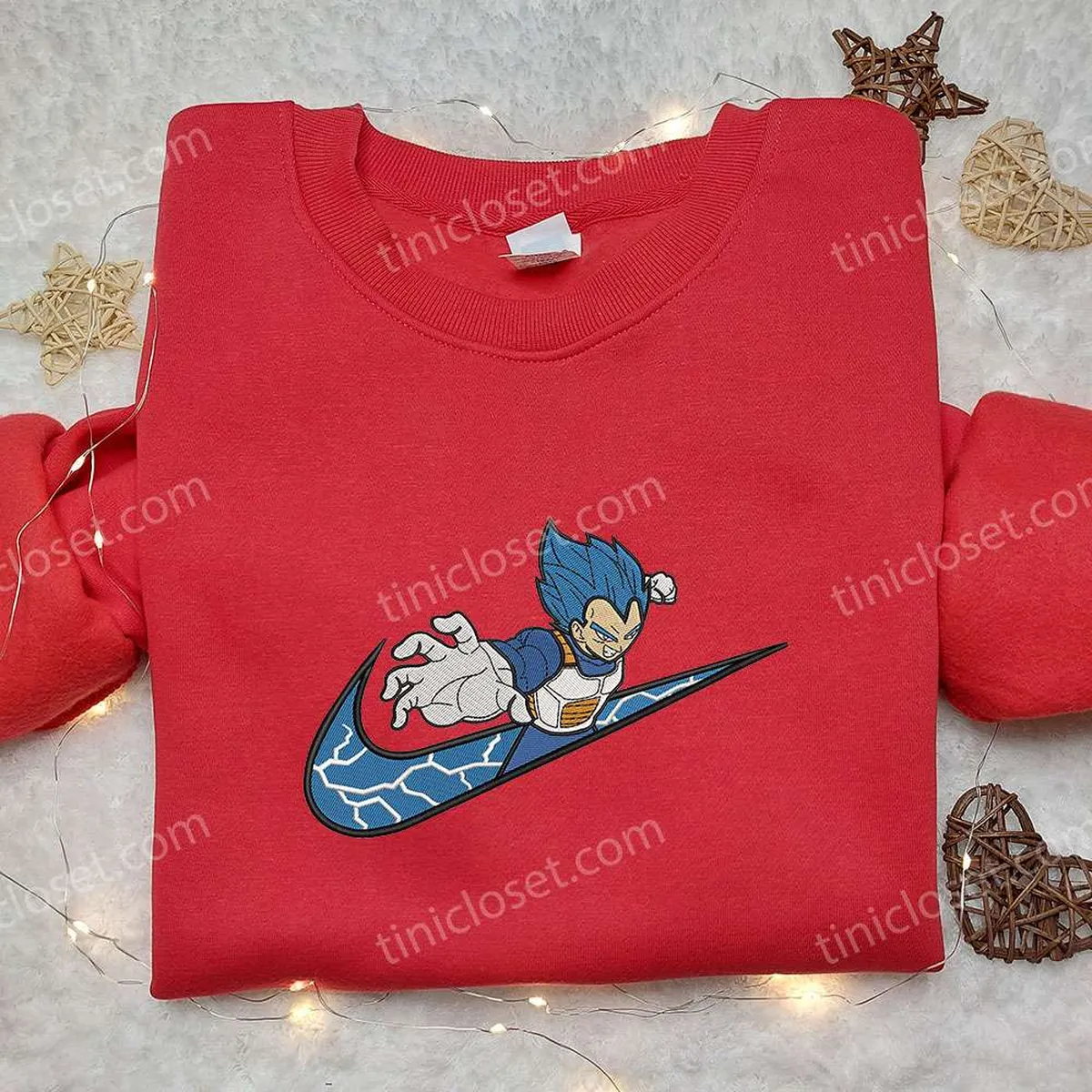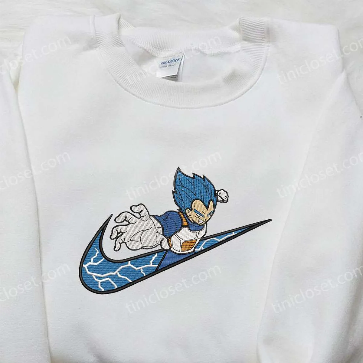 Vegeta x Nike Swoosh Embroidered Hoodie, Dragon Ball Embroidered Shirt, Nike Inspired Embroidered Shirt