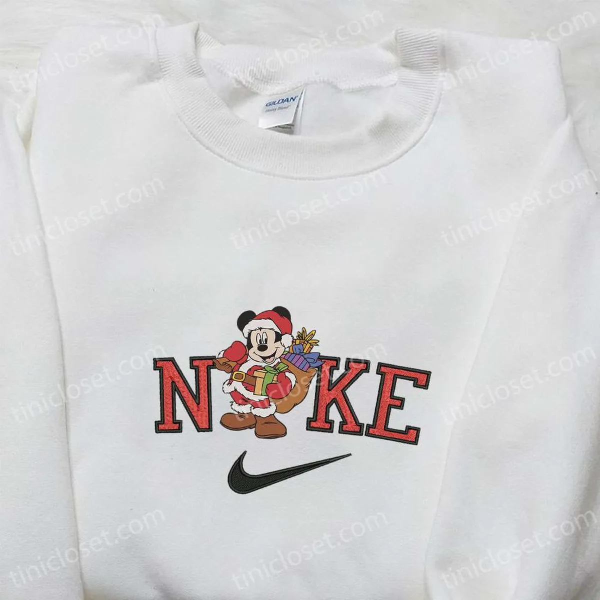 Vintage Santa Mickey Magic Castle x Nike Christmas Embroidered Sweatshirt, Disney Characters Movie Merry Christmas Embroidered Shirt, Best Christmas Day Gift Ideas