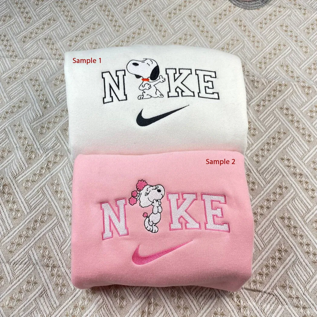Vintage Snoopy Couple x Nike Embroidered Shirt, Embroidered Sweatshirt Fashion Style For Couples
