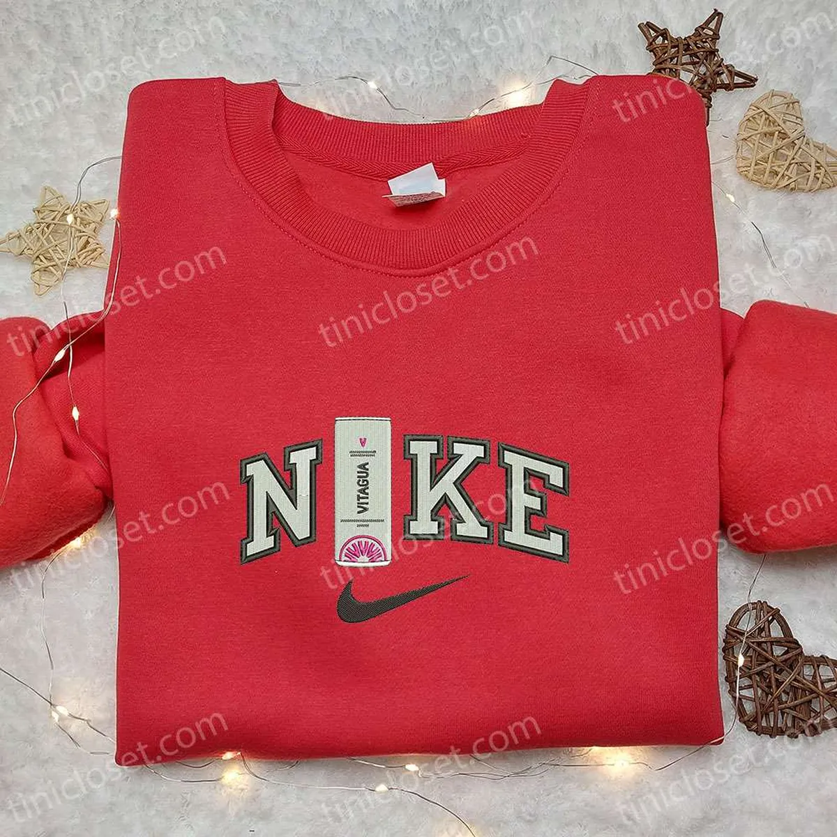 Vitagua Can x Nike Embroidered Shirt, Favorite Food And Drink Embroidered Hoodie, Nike Inspired Embroidered Sweatshirt