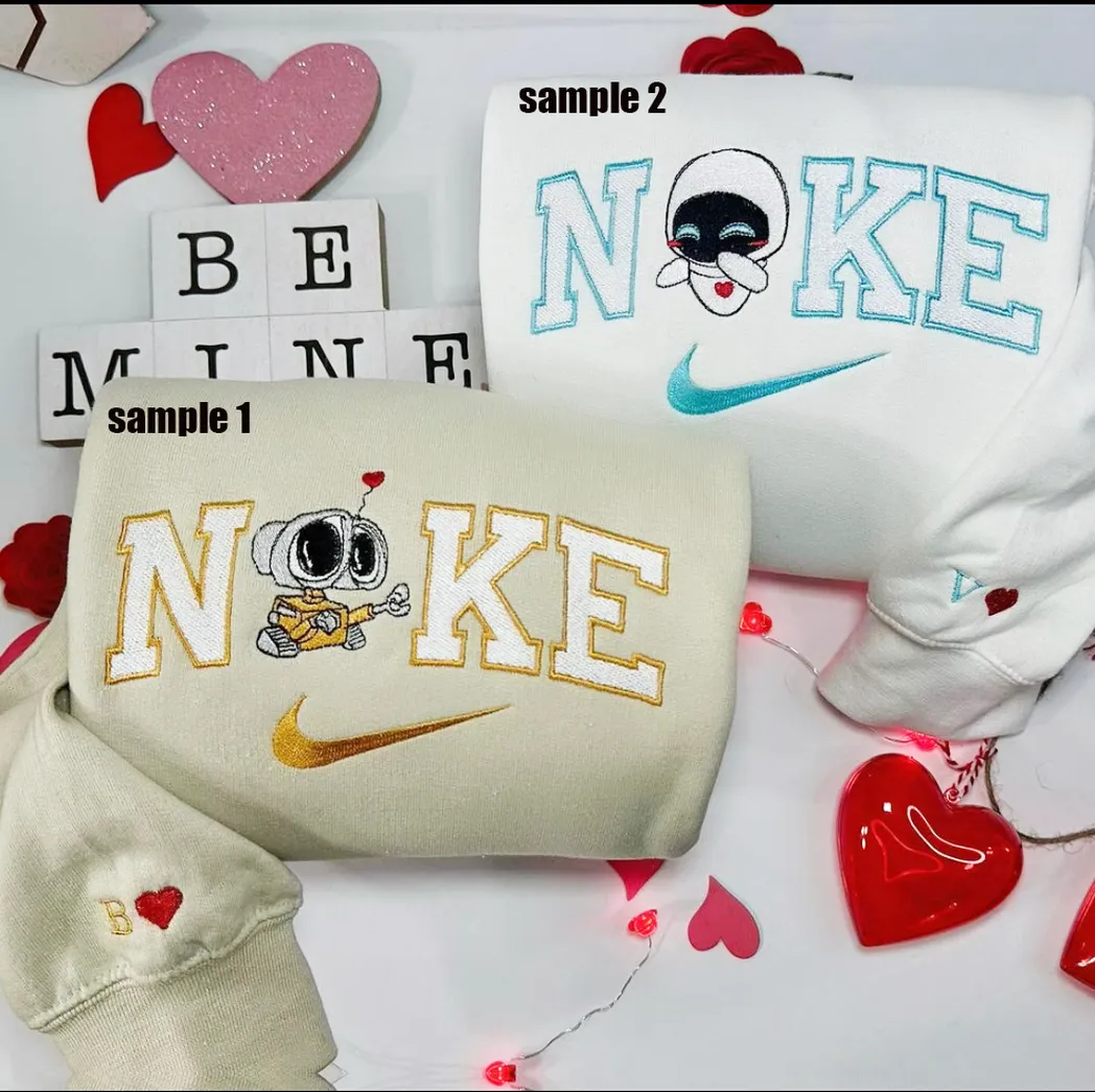 Wall-E and Eve x Nike Embroidered Shirt, Embroidered Sweatshirt Fashion Style For Couples