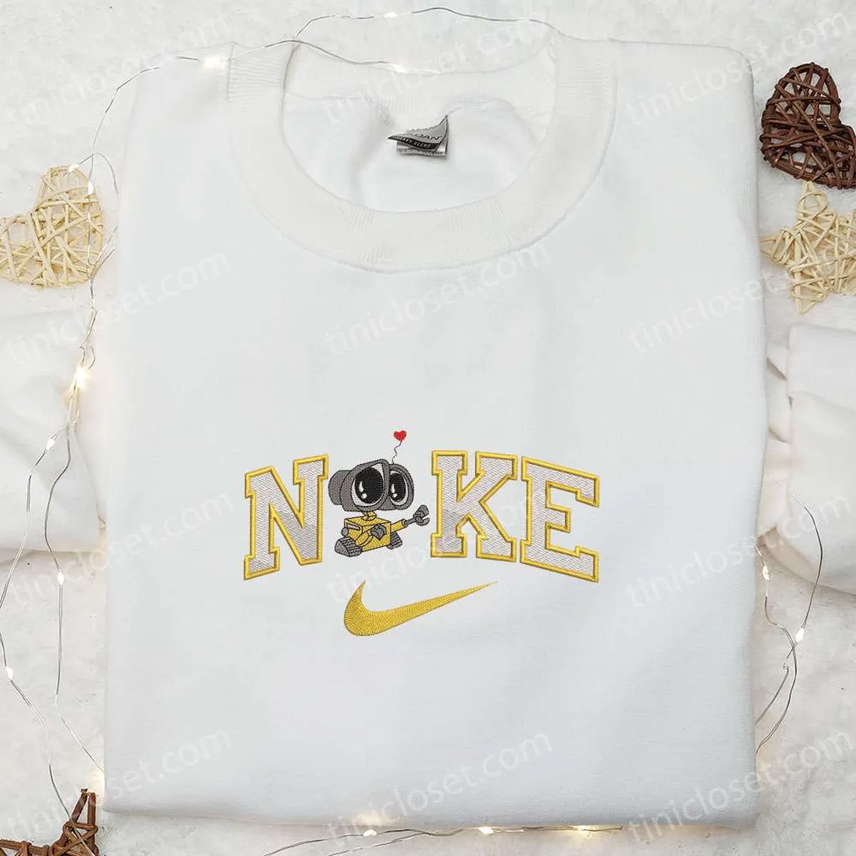Wall-E Love x Nike Cartoon Embroidered Hoodie, Disney Characters Embroidered Shirt, Best Gift Ideas for Family