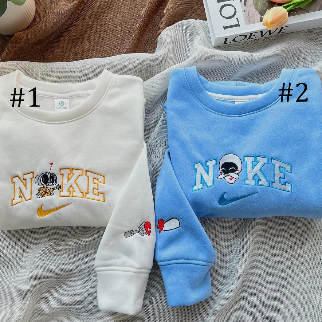 Walle Eve Couple x Nike Embroidered Shirt, Embroidered Sweatshirt Fashion Style For Couples