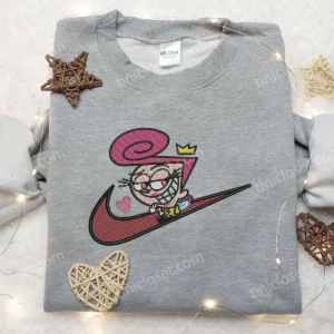 Wanda Fairywinkle x Nike Swoosh Embroidered Hoodie, The Fairly OddParents Embroidered Shirt, Nike Inspired Embroidered Shirt