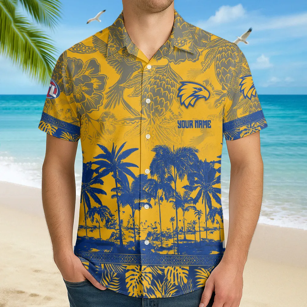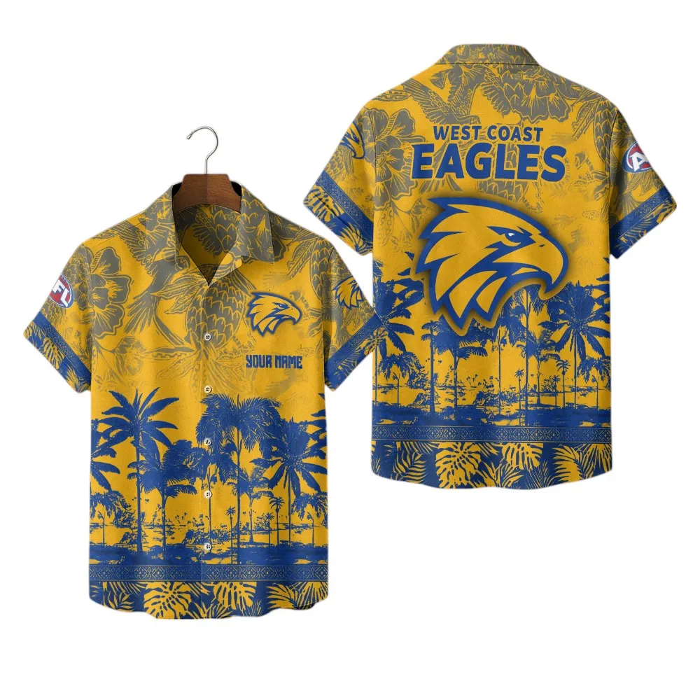 West Coast Eagles Fans Gift Hawaiian Shirt, All Over Print Hawaiian Shirt For Sport Fan, Custom Name AFL157071425129