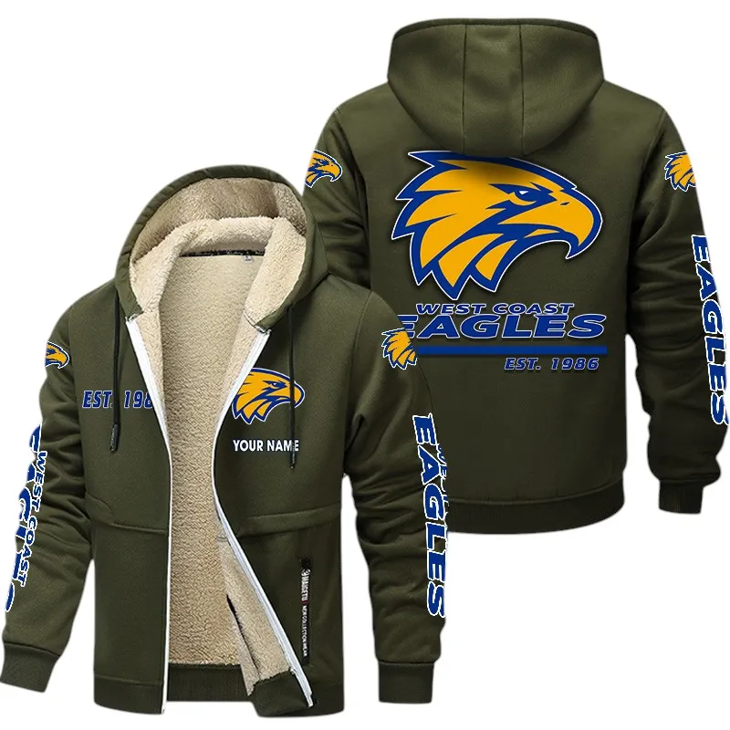 Cheer louder and layer smarter with this West Coast Eagles-inspired fleece hoodie jacket, engineered to keep you warm, stylish, and game-day ready. Whether you’re heading to the stadium, tailgating with friends, or watching from home, this zip-up hoodie combines cozy comfort with bold fan energy – because loyalty doesn’t freeze when the temperature drops.