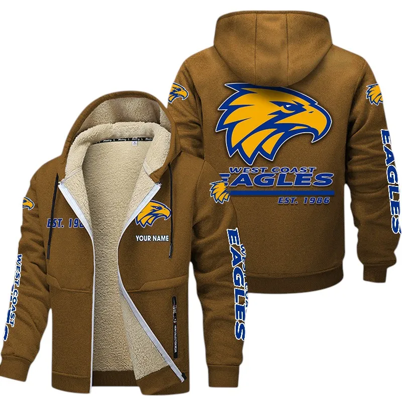 Cheer louder and layer smarter with this West Coast Eagles-inspired fleece hoodie jacket, engineered to keep you warm, stylish, and game-day ready. Whether you’re heading to the stadium, tailgating with friends, or watching from home, this zip-up hoodie combines cozy comfort with bold fan energy – because loyalty doesn’t freeze when the temperature drops.