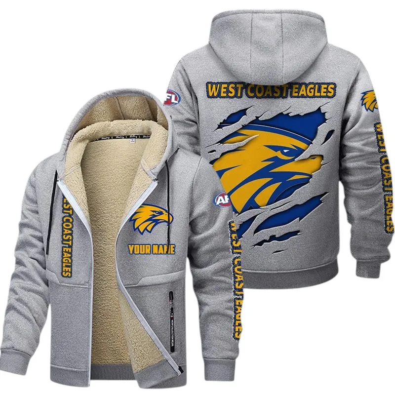 Cheer louder and layer smarter with this West Coast Eagles-inspired fleece hoodie jacket, engineered to keep you warm, stylish, and game-day ready. Whether you’re heading to the stadium, tailgating with friends, or watching from home, this zip-up hoodie combines cozy comfort with bold fan energy – because loyalty doesn’t freeze when the temperature drops.