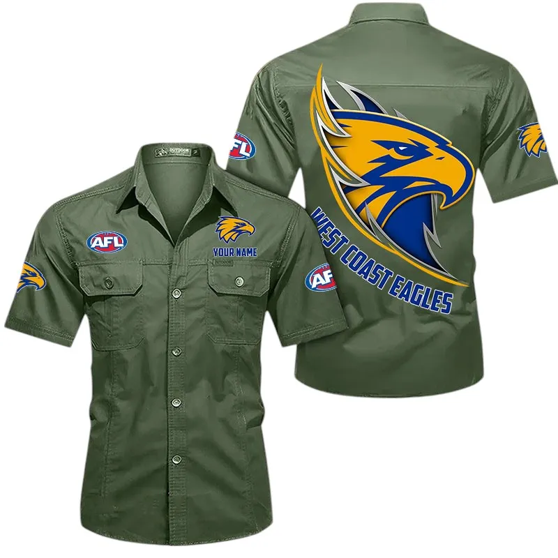 West Coast Eagles Fans Gift Short Sleeved Shirt, All Over Print Shỉt For Sport Fan, Custom Name AFL155071425127 – Army Green