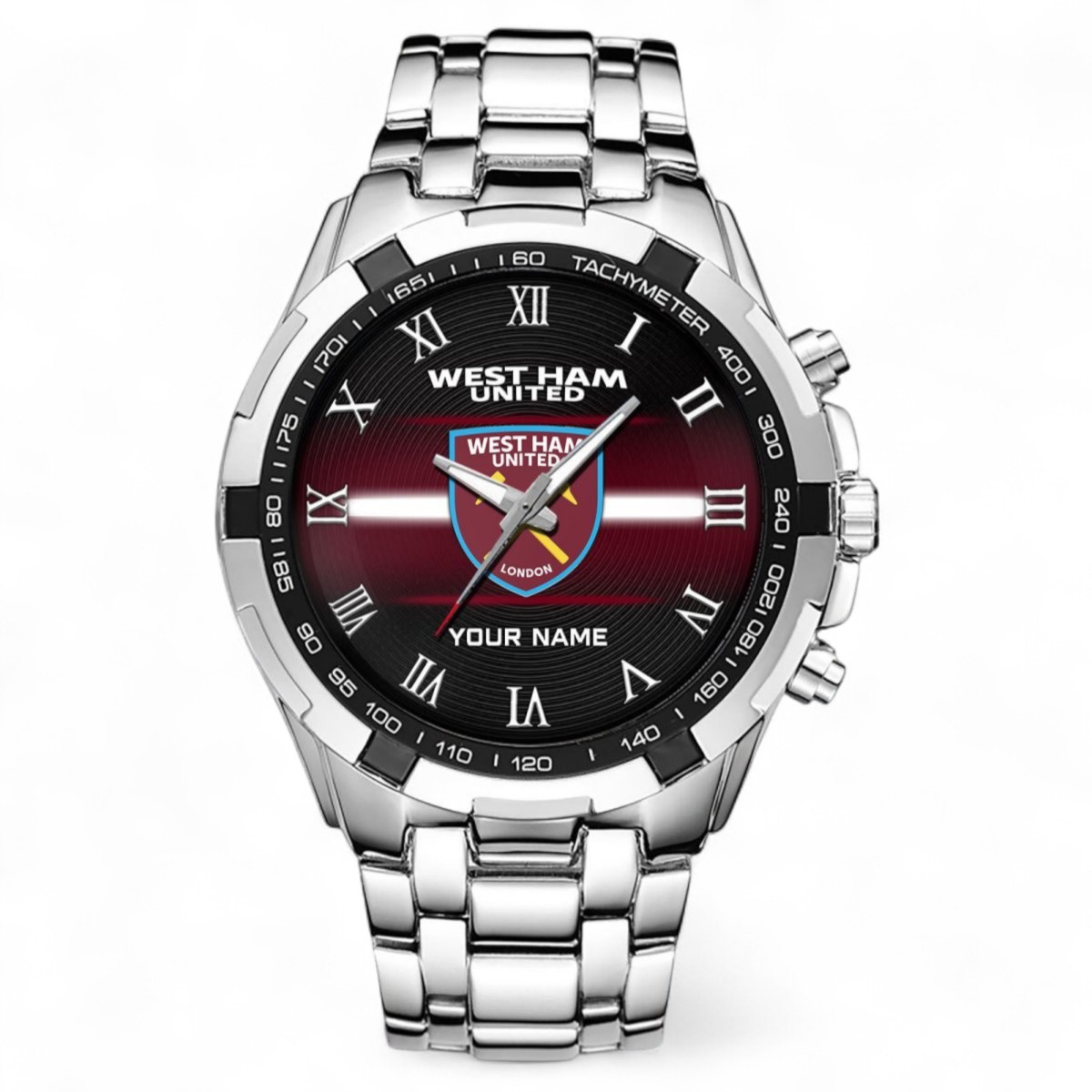 West Ham United Fans Gift Steel Watches, All Over Print Steel Watches For Sport Fan, Custom Name EPL103072925342