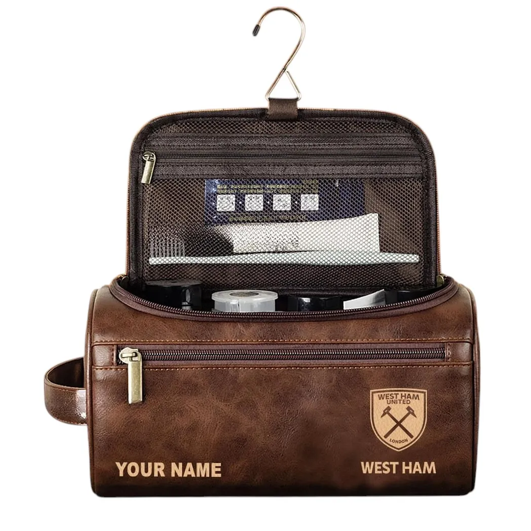 West Ham United Leather Toiletry Bag, All Over Print Leather Toiletry Bag West Ham United - Red Brown DEPL5405092045