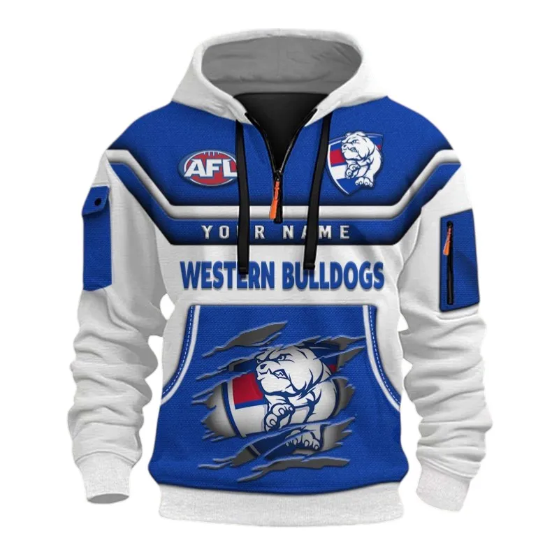 Custom Half-Zip Hoodie 3D Printed for Western Bulldogs Fans – Game-Ready Comfort Meets Personalized Power