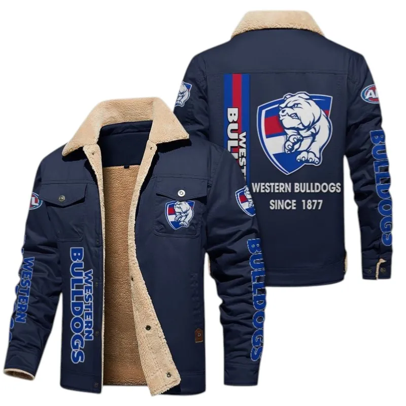 Western Bulldogs Fans Gift Jacket Fur Collar Fleece, All Over Print Collar Fleece For Sport Fan AFL163080225138 – Navy Blue