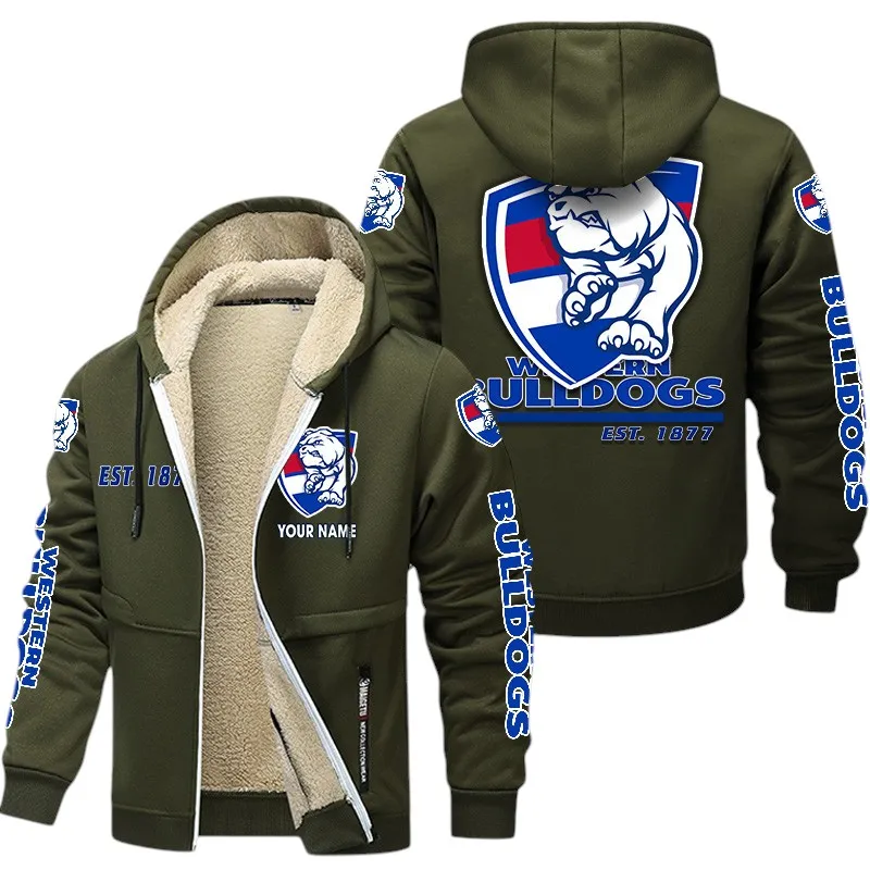 Western Bulldogs Fans Gift Lamb Fleece Thick Coat, All Over Print Thick Coat For Sport Fan, Custom Name AFL144071725130 – Army Green