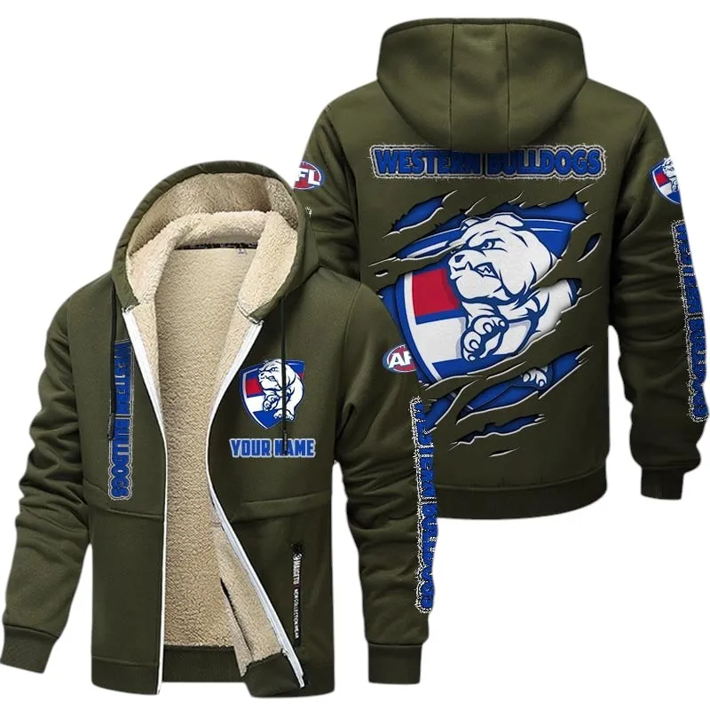 Western Bulldogs Fans Gift Lamb Fleece Thick Coat, All Over Print Thick Coat For Sport Fan, Custom Name AFL145071825129 – Army Green