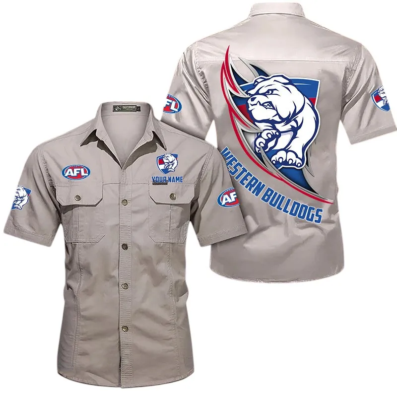 Western Bulldogs Fans Gift Short Sleeved Shirt, All Over Print Shỉt For Sport Fan, Custom Name AFL155071425128 - Khaki