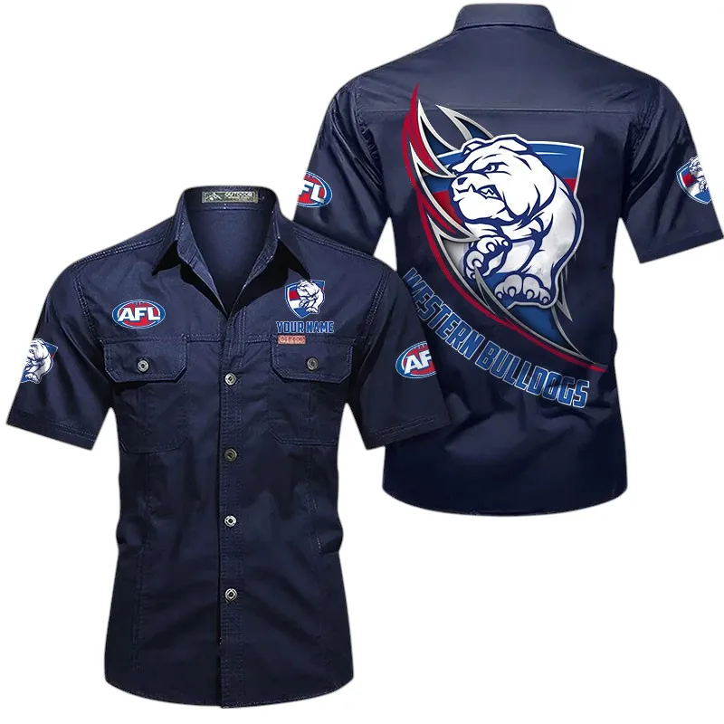 Western Bulldogs Fans Gift Short Sleeved Shirt, All Over Print Shỉt For Sport Fan, Custom Name AFL155071425128 – Dark Blue
