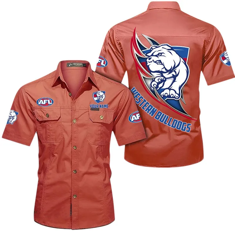 Western Bulldogs Fans Gift Short Sleeved Shirt, All Over Print Shỉt For Sport Fan, Custom Name AFL155071425128 - Turmeric