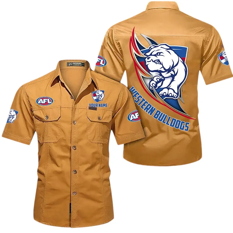 Western Bulldogs Fans Gift Short Sleeved Shirt, All Over Print Shỉt For Sport Fan, Custom Name AFL155071425128 - Khaki