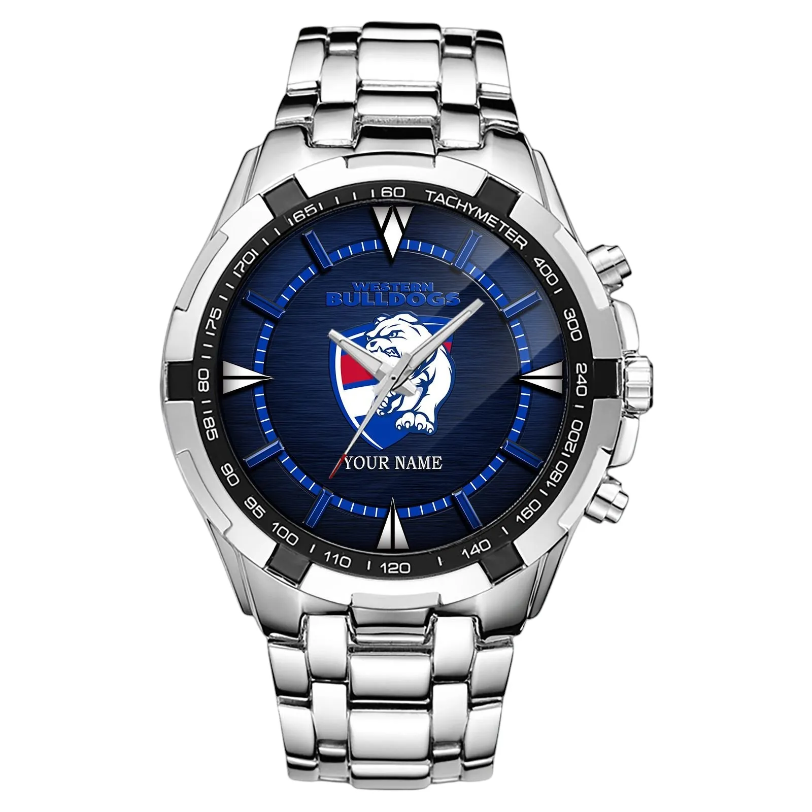 Western Bulldogs Fans Gift Steel Watches, All Over Print Watches For Sport Fan, Custom Name AFL151071525132 - Silver