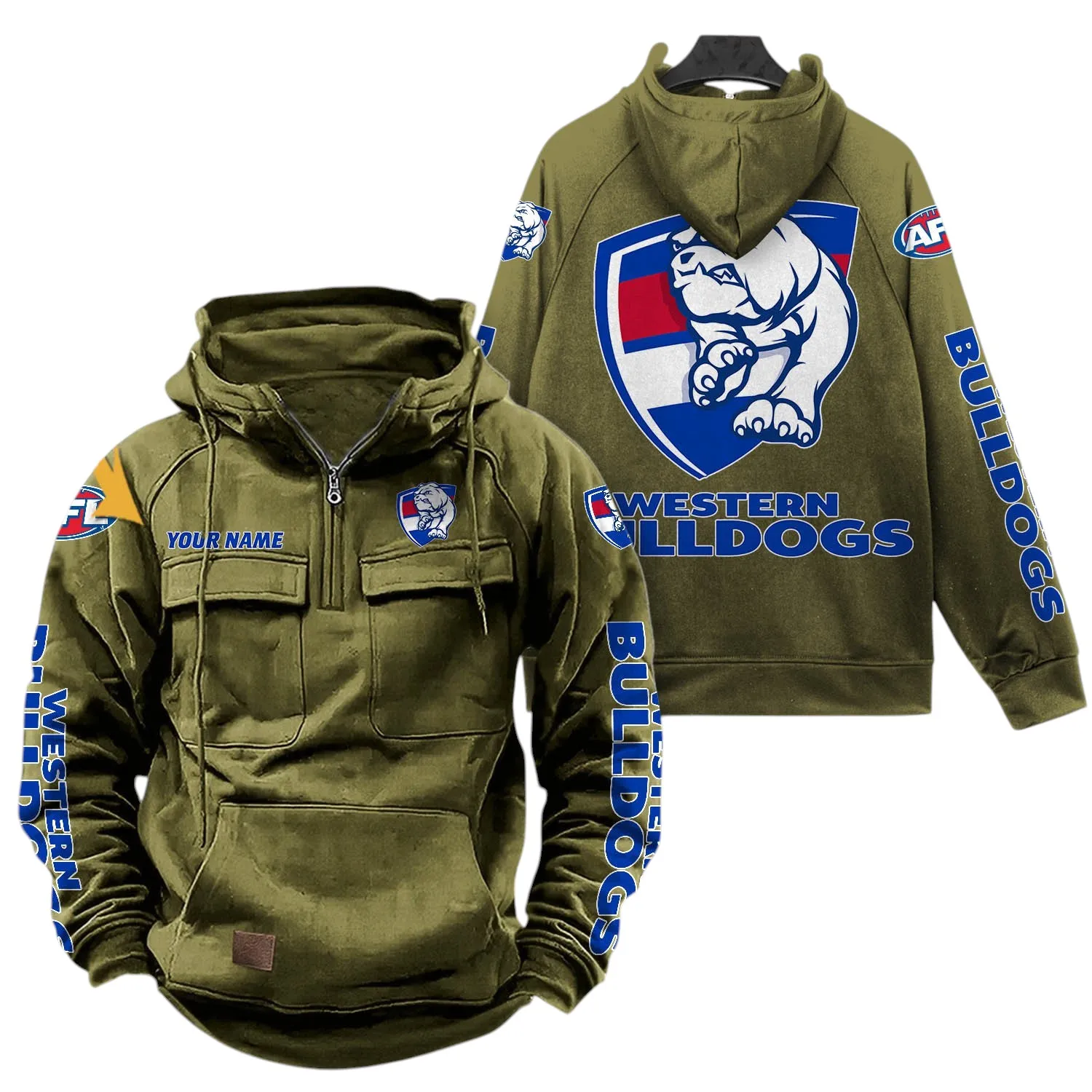 Western Bulldogs Fans Gift Tactical Quarter Zip Hoodie, All Over Print Hoodie For Sport Fan, Custom Name AFL150071825132 – Army Green