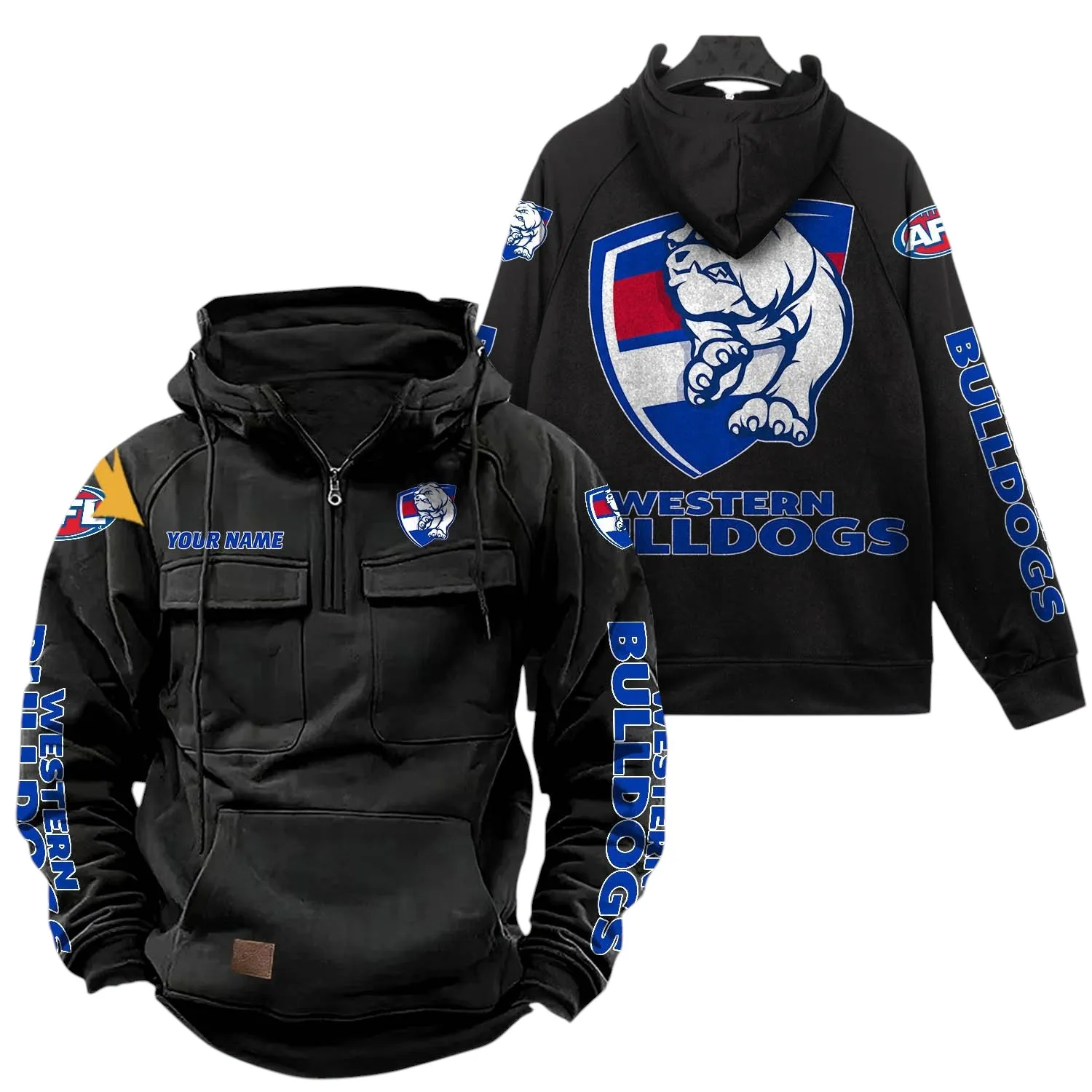 Western Bulldogs Fans Gift Tactical Quarter Zip Hoodie, All Over Print Hoodie For Sport Fan, Custom Name AFL150071825132 – Black