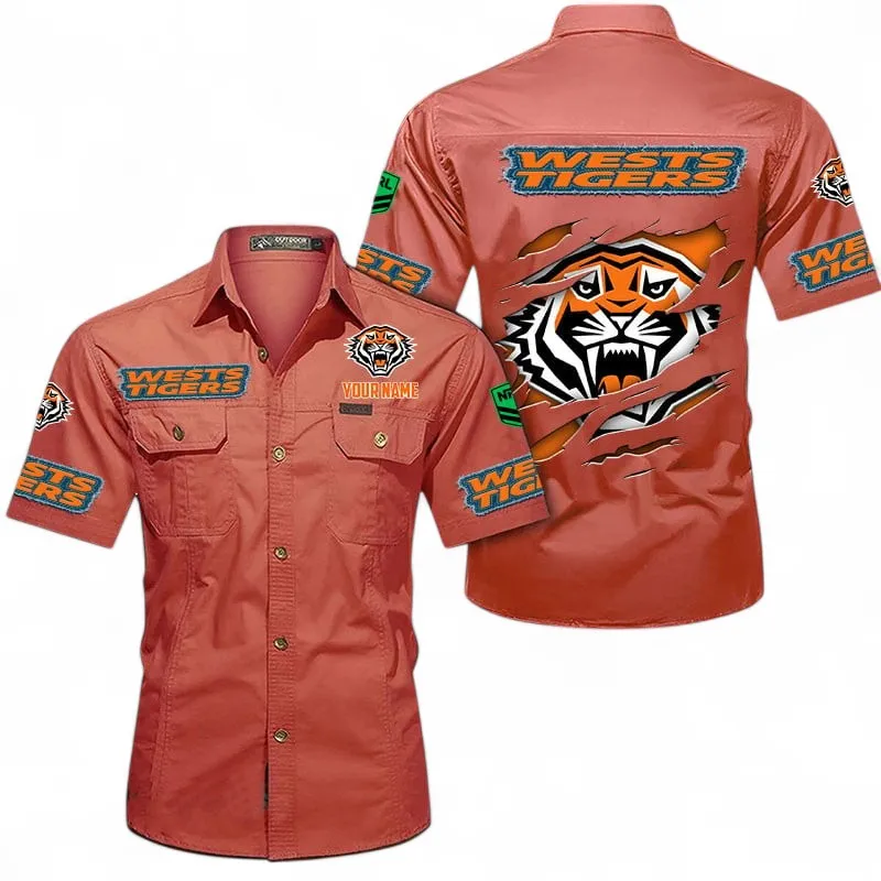 Wests Tigers Fans Gift Short Sleeved Shirt, All Over Print Short Sleeved Shirt For Sport Fan, Custom Name NRL172071625341-Turmeric