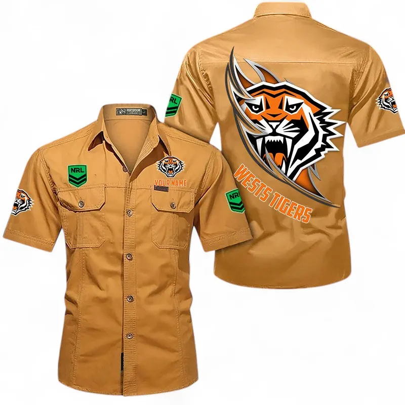 Wests Tigers Fans Gift Short Sleeved Shirt, All Over Print Short Sleeved Shirt For Sport Fan, Custom Name NRL173071625009-Khaki