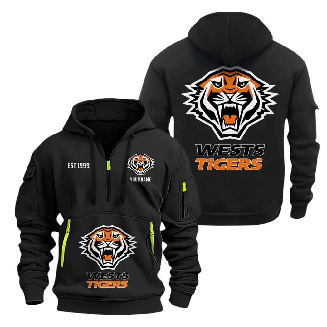 Wests Tigers Hoodie Half Zipper, All Over Print Hoodie Half Zipper Wests Tigers DNRL1356302030 - Black