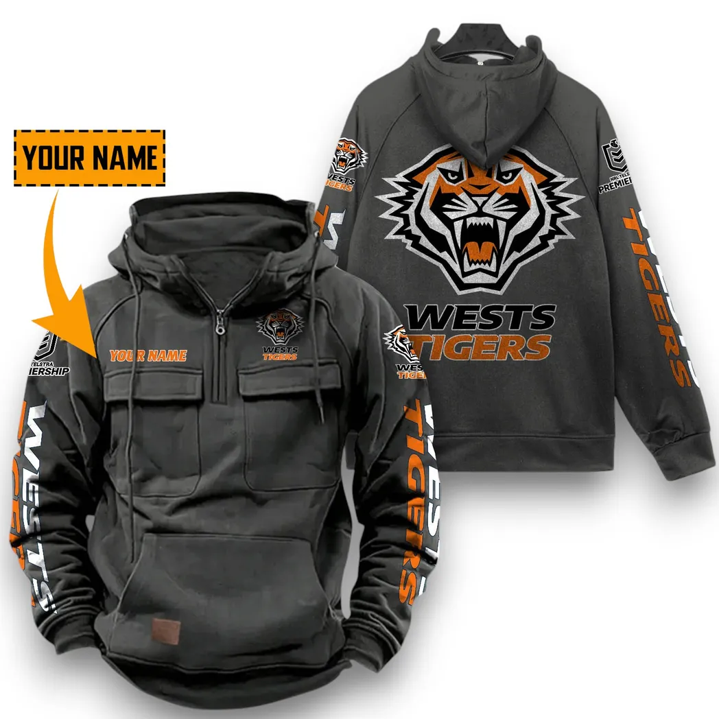 Wests Tigers NRL Tactical Quarter Zip Hoodie NRL29012325564, Gift For Fan Wests Tigers - Black