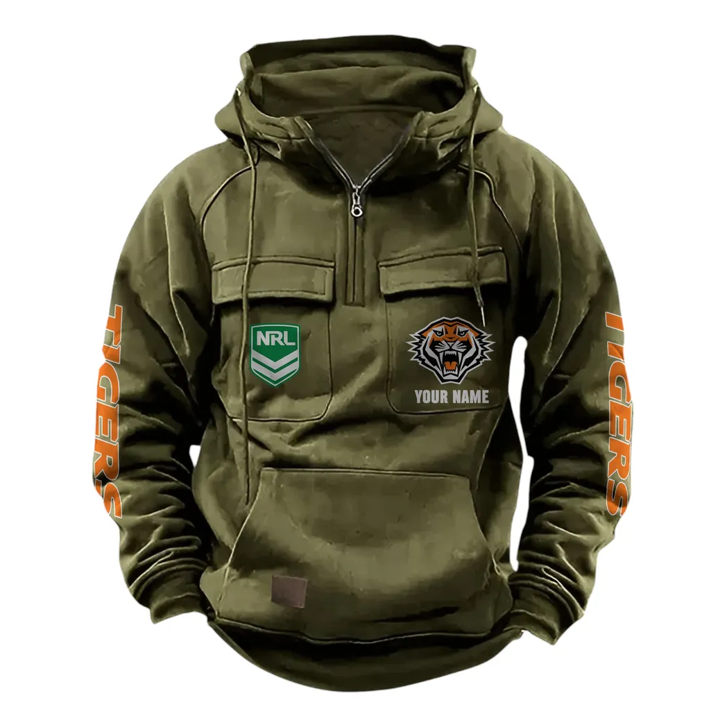 Wests Tigers NRL Tactical Quarter Zip Hoodie NRL43012125583, Gift For Fan Wests Tigers – Army Green