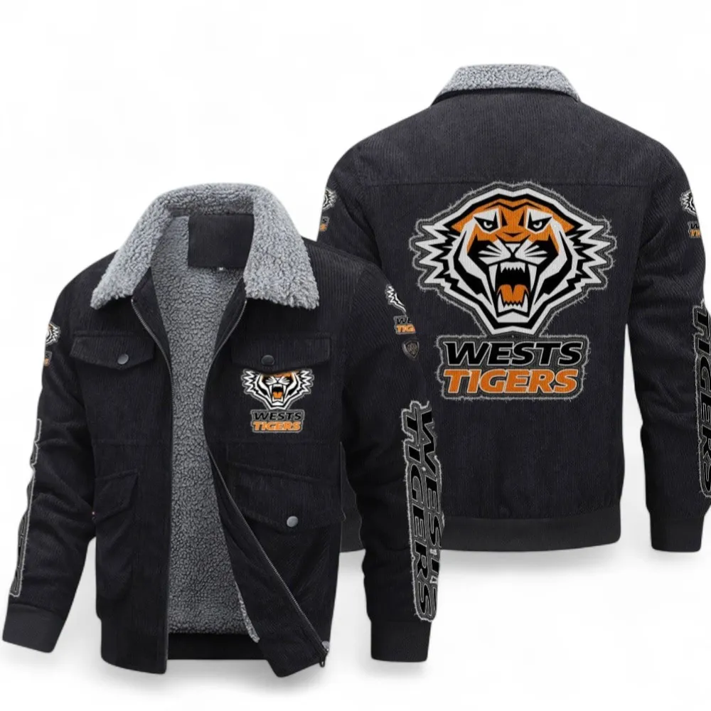 Custom Wests Tigers Thickened Corduroy Jacket – Classic Warmth, Bold Team Spirit