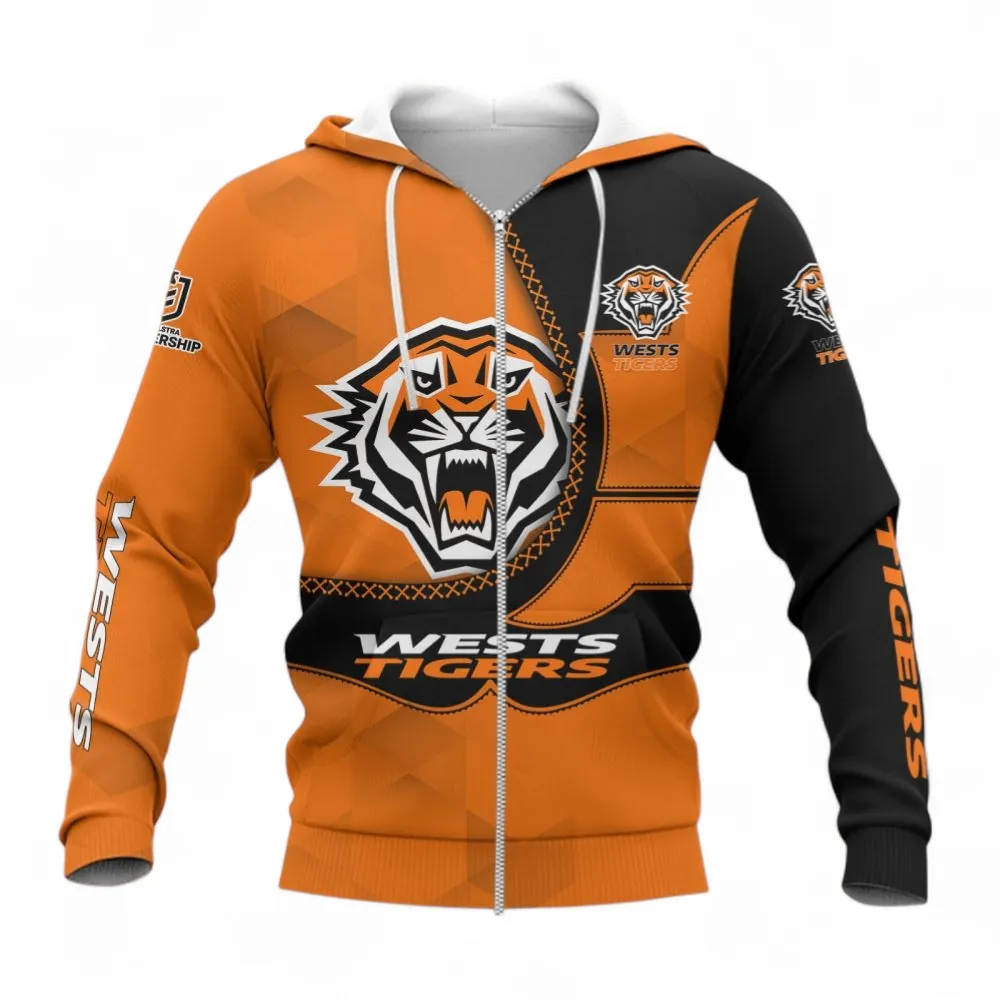 Wests Tigers Fan Hoodie Full-Zip Warmth with Game-Day Energy