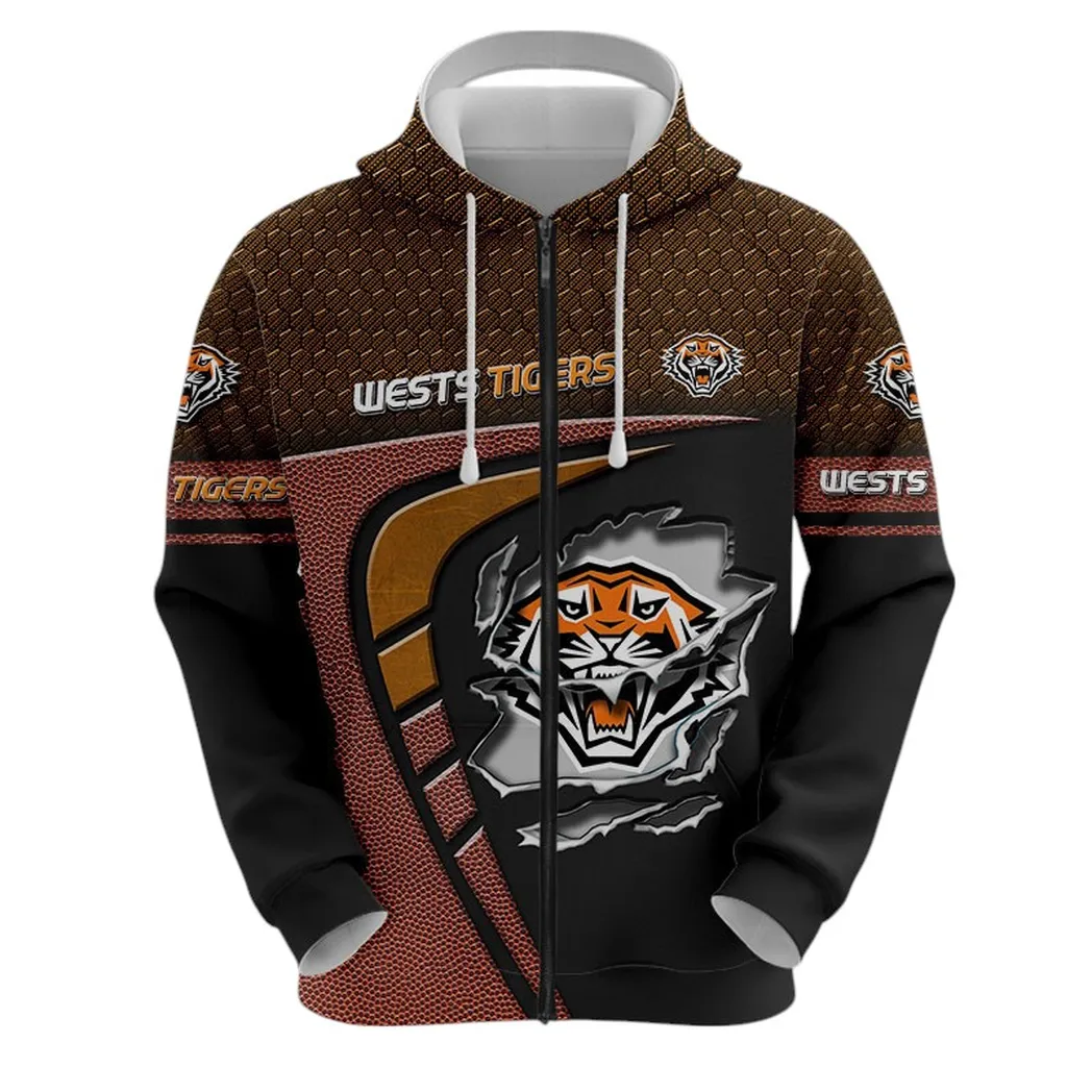 Wests Tigers Zipper Hoodie, All Over Print Zipper Hoodie Wests Tigers DNRL1266282033