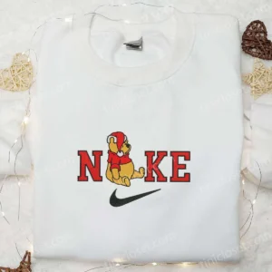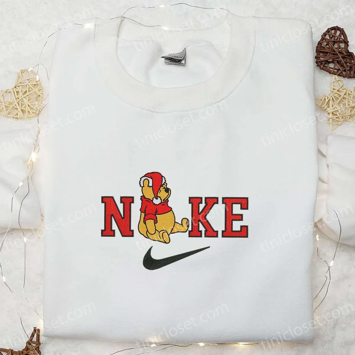 Winnie Pooh Asleep x Nike Christmas Embroidered Sweatshirt, Cartoon Christmas Embroidered Shirt, Best Christmas Gift Ideas