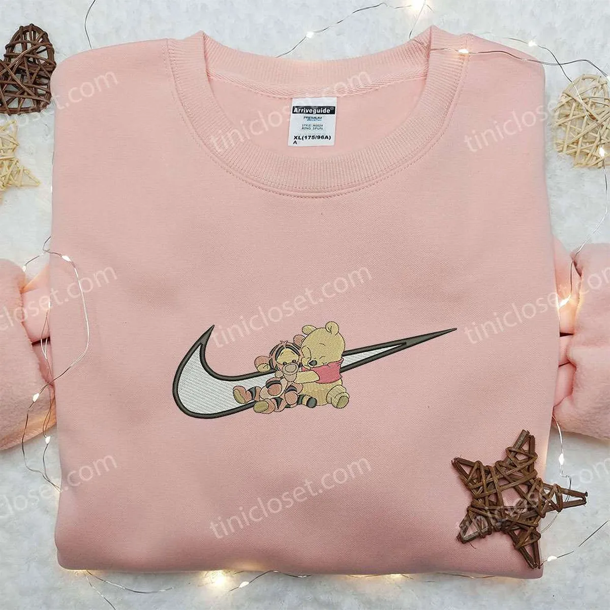 Winnie The Pooh and Tiger x Nike Swoosh Embroidered Sweatshirt, Winnie The Pooh Embroidered Sweatshirt, Nike Inspired Embroidered Shirt