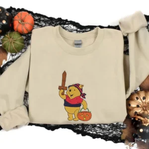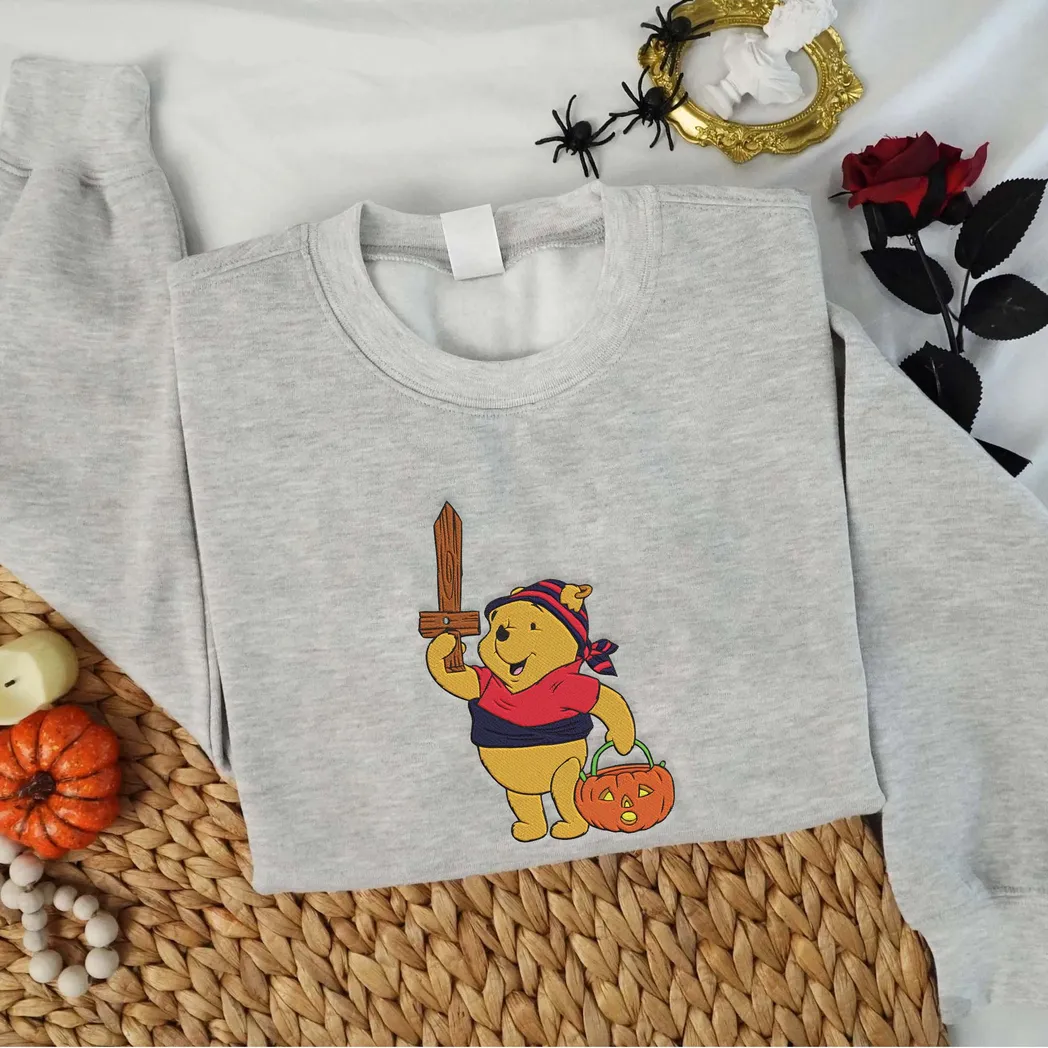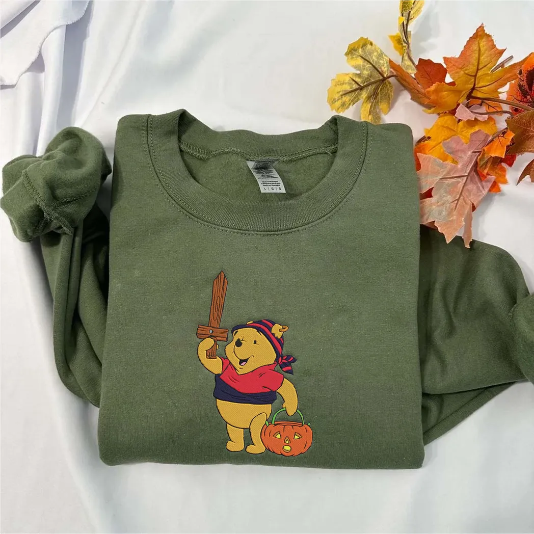Winnie The Pooh Cartoon Halloween Embroidered Sweatshirt Fashion Style