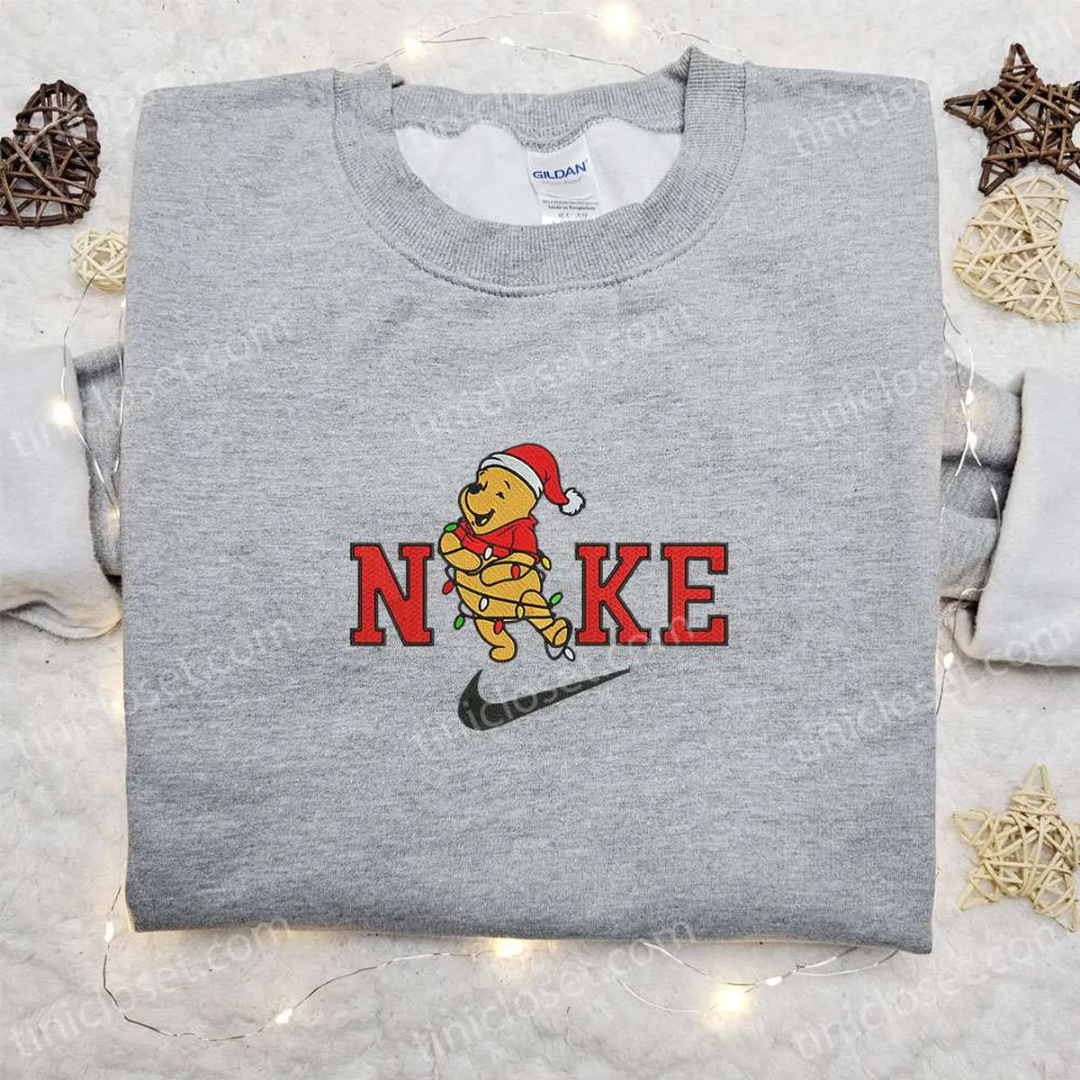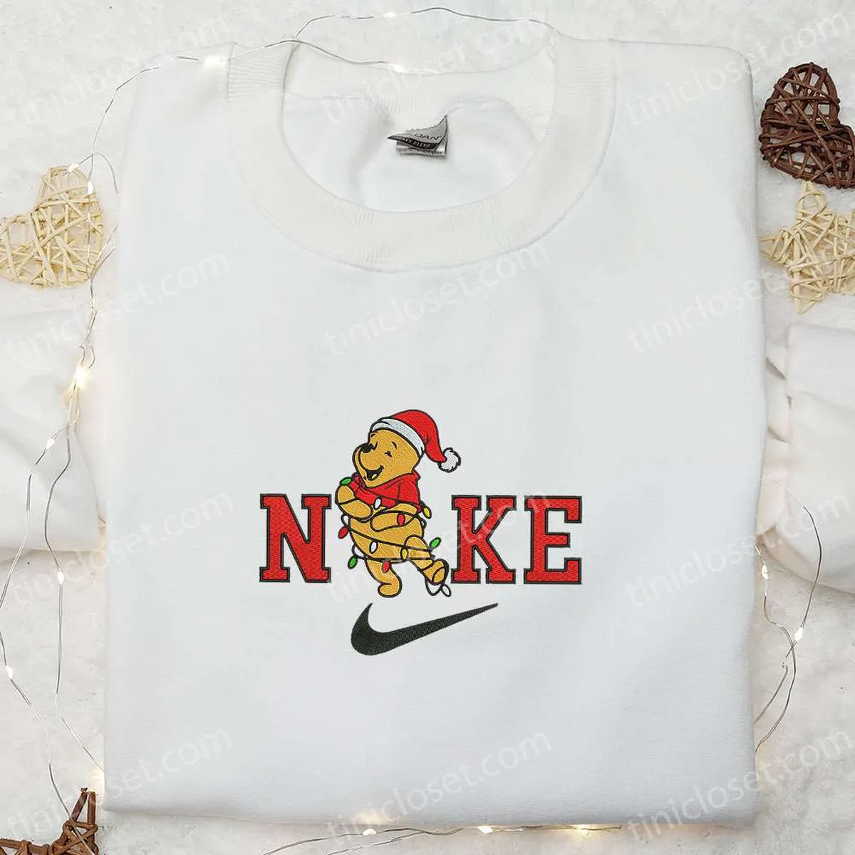 Winnie the Pooh Christmas Light x Nike Christmas Embroidered Sweatshirt, Cartoon Christmas Embroidered Shirt, Best Christmas Gift Ideas
