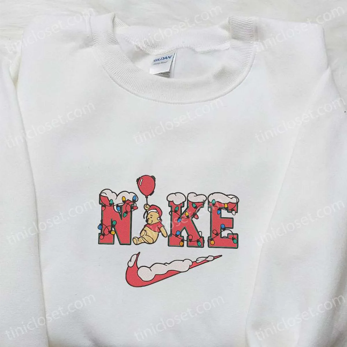 Winnie The Pooh With Balloon Xmas x Nike Embroidered Shirt, Christmas Embroidered Hoodie, Best Gifts For Family