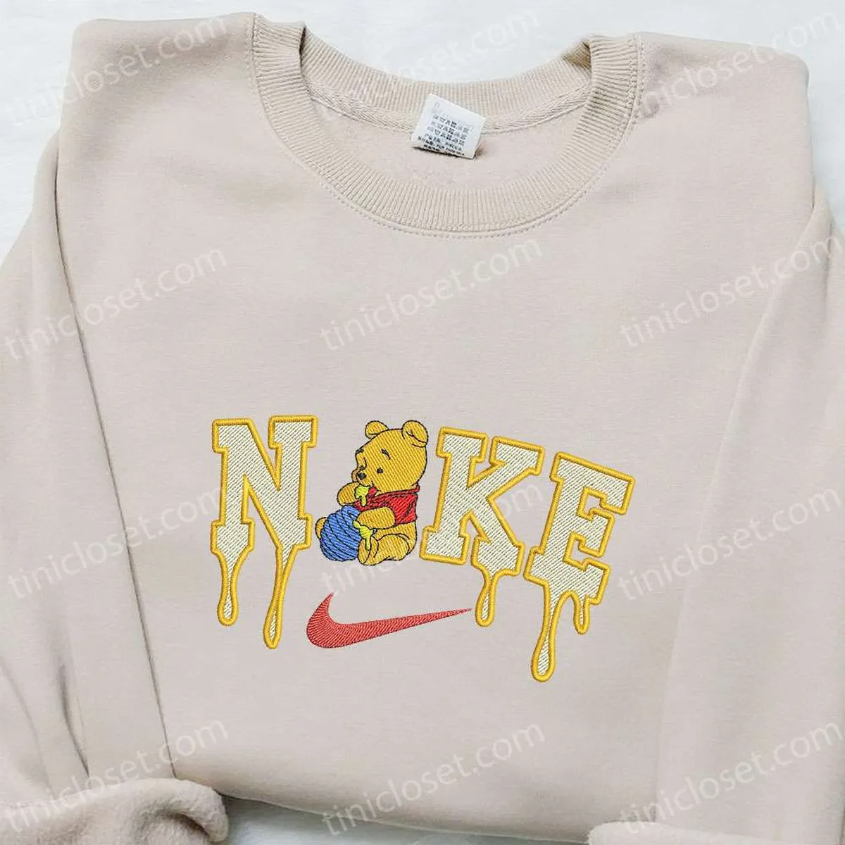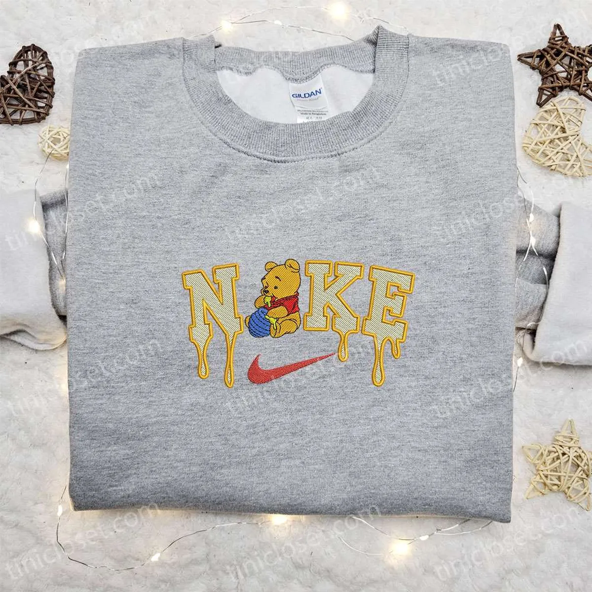 Winnie the Pooh x Nike Cartoon Embroidered Shirt, Nike Inspired Embroidered Shirt, Best Gift for Family
