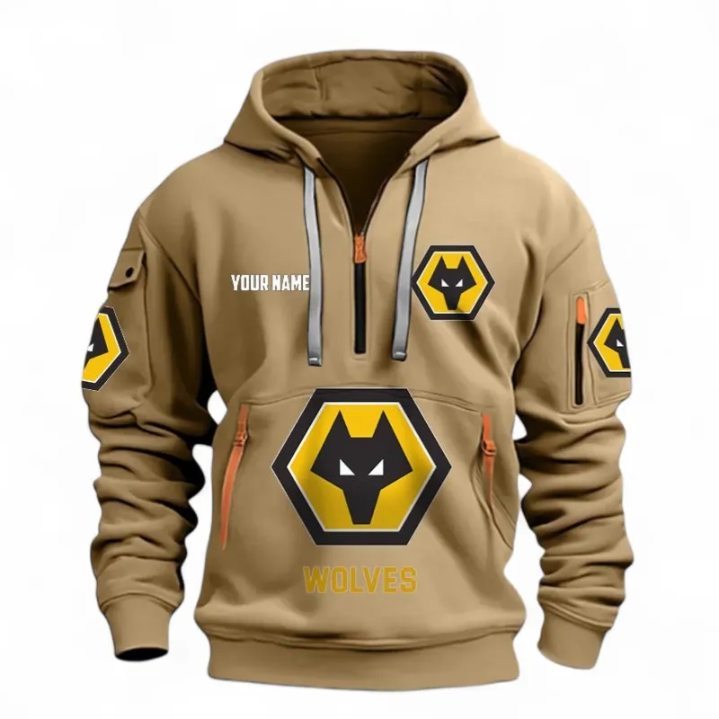 Wolverhampton Fans Gift Hoodie Half Zipper, All Over Print Hoodie Half Zipper For Sport Fan, Custom Name EPL116073125018-Khaki