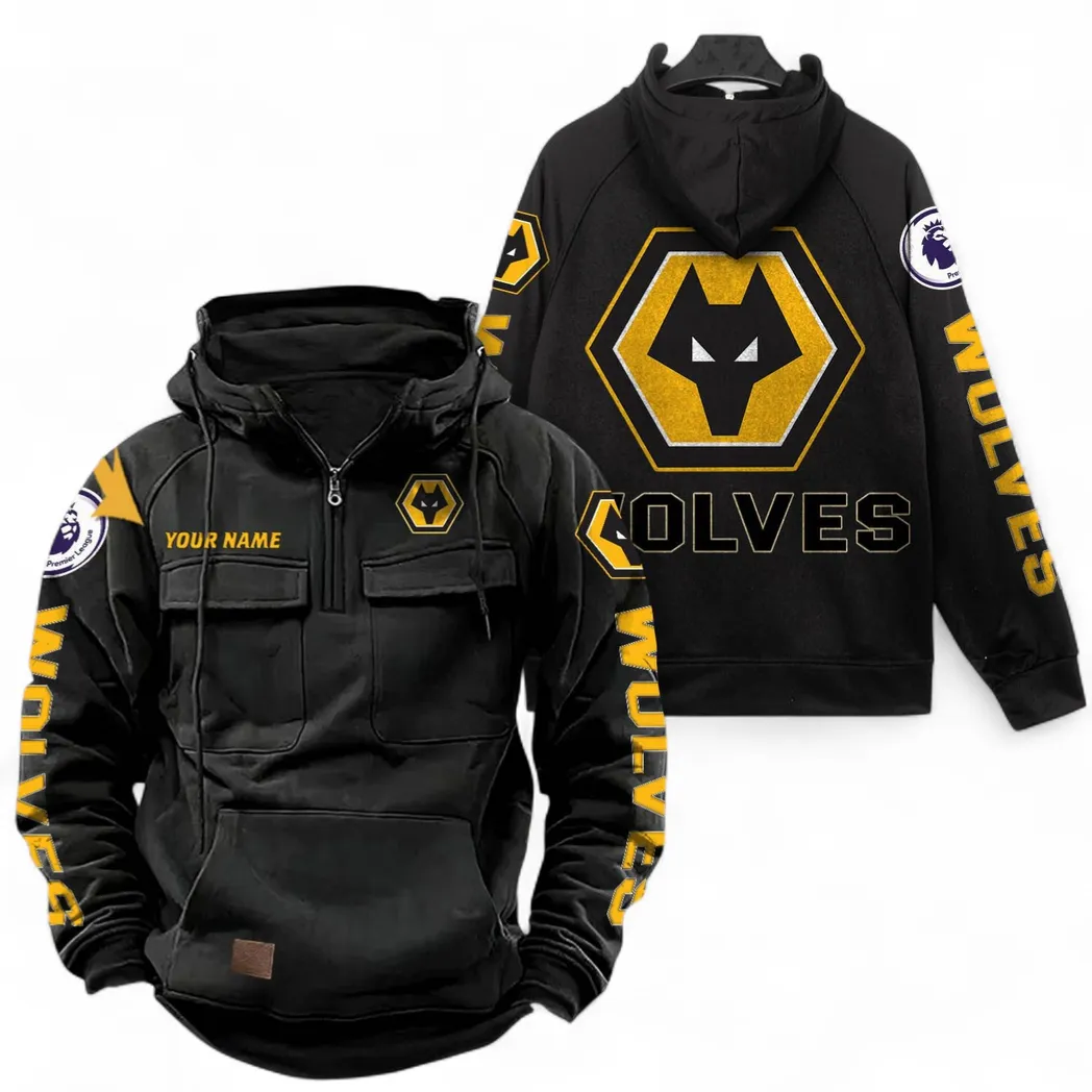 Wolverhampton Wanderers F.C Fans Gift Tactical Quarter Zip Hoodie, All Over Print Tactical Quarter Zip Hoodie For Sport Fan, Custom Name EPL111073025119-Black
