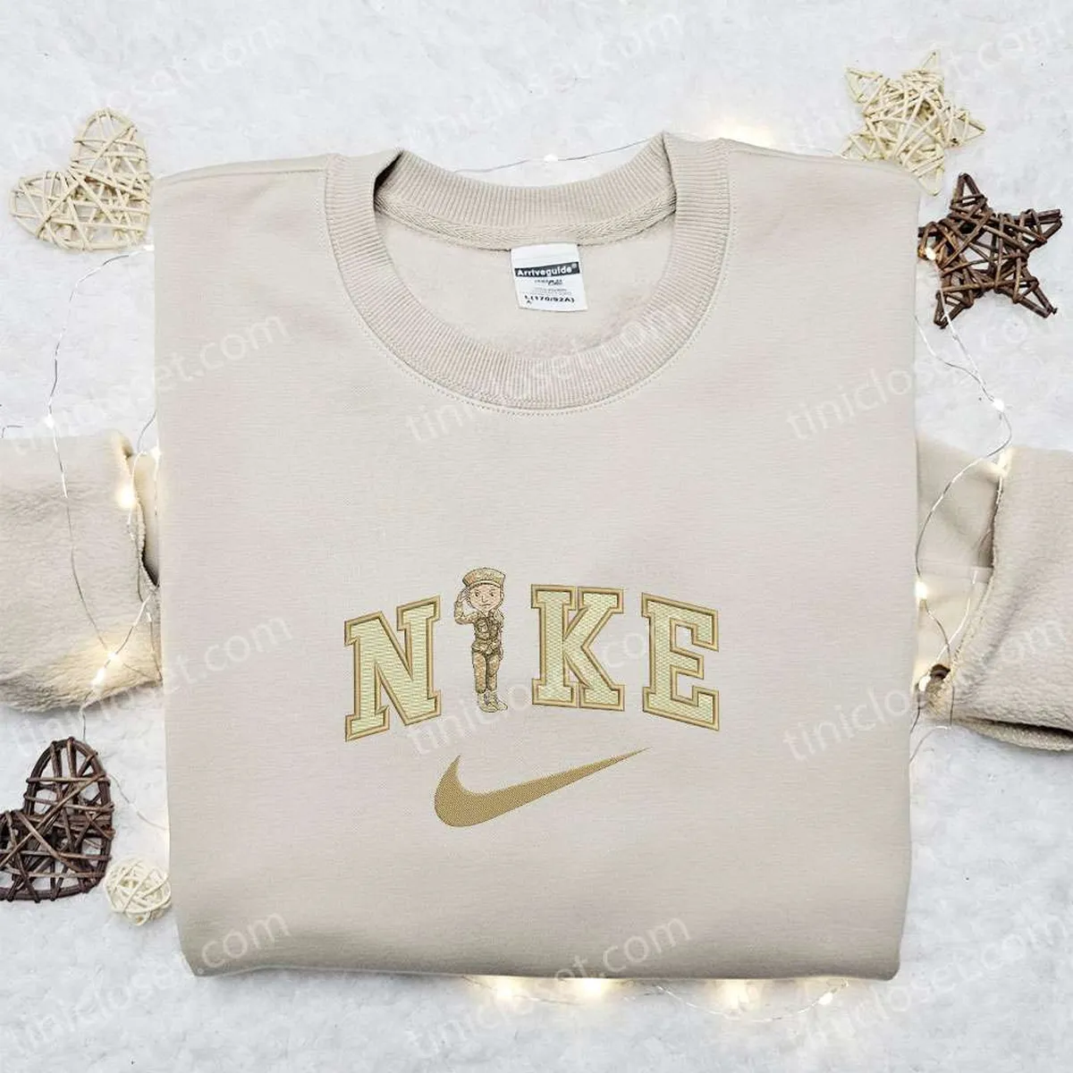 Women Soldier x Nike Embroidered Sweatshirt, Cartoon Embroidered Shirt, Best Gift Ideas