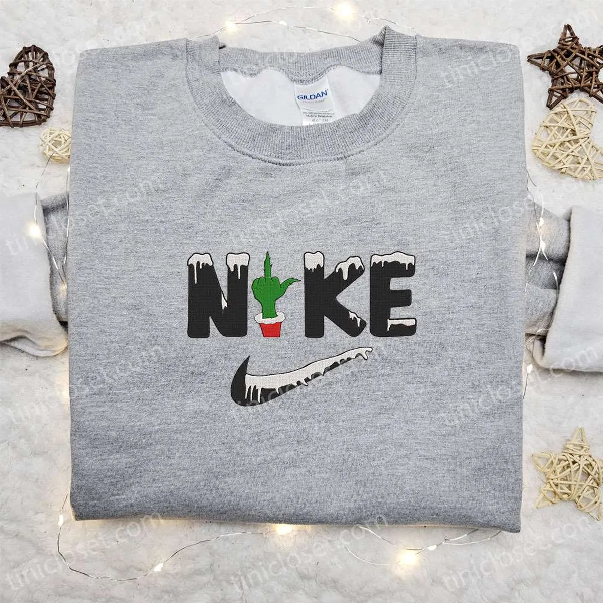 Xmas Grinch Hand x Nike Movie Embroidered Sweatshirt, Christmas Embroidered Shirt, Best Christmas Gift Ideas for Family