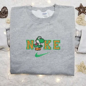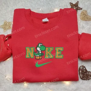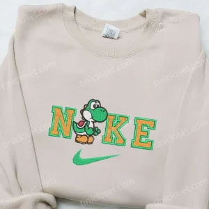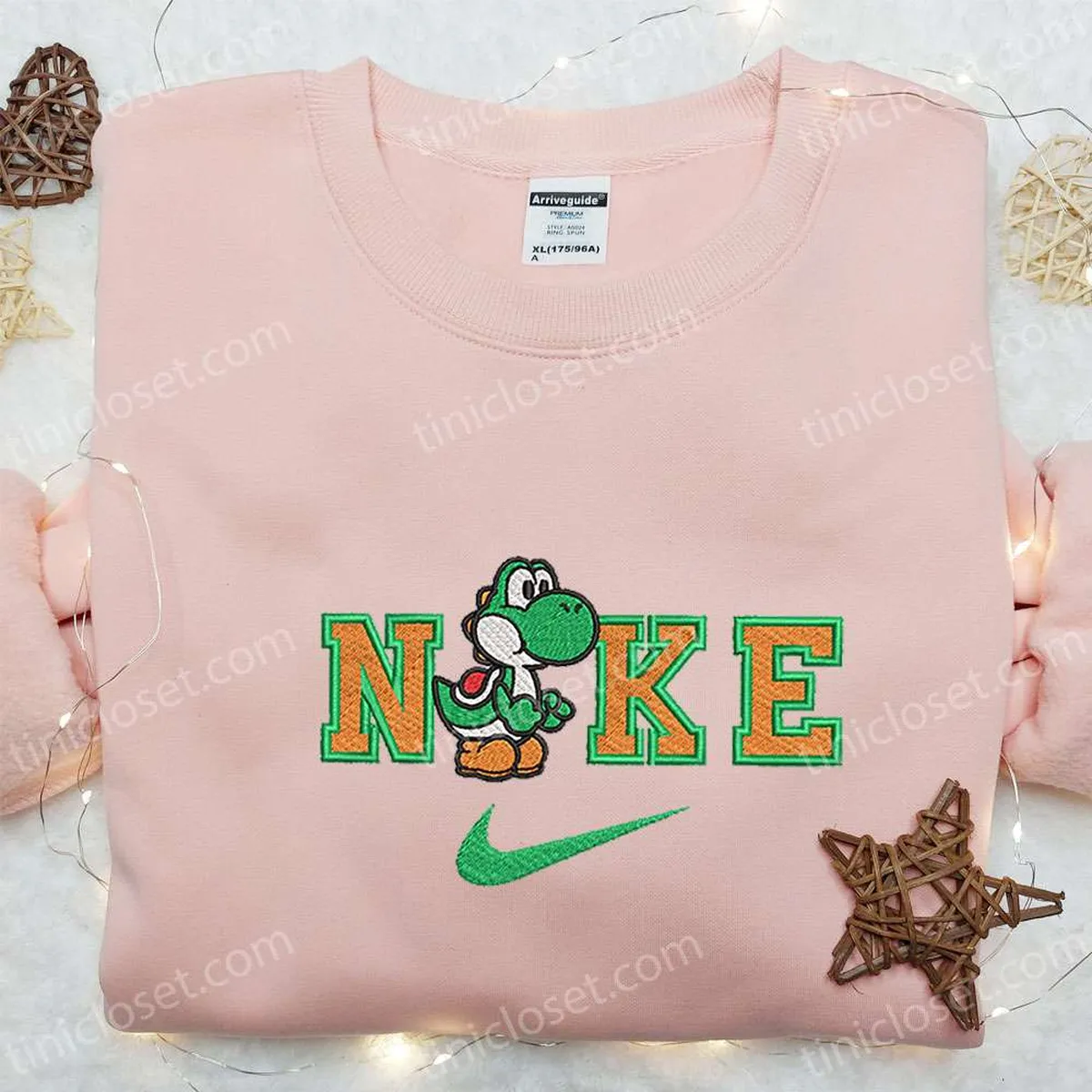 Yoshi x Nike Cartoon Embroidered Shirt, Super Mario Embroidered Hoodie, Custom Nike Embroidered T-shirt